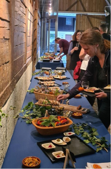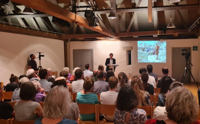 Am Donnerstag, 12.5. wurde in der Bossartschüür in Windisch die Vernissage der neuen Publikation “Zu Gast bei Offizieren in Vindonissa” von einem mehrköpfigen Autor*innenenteam um Matthias Flück gefeiert. Das Buch ist das 26. in der Reihe “Veröffentlichungen der Gesellschaft Pro Vindonissa” und wertet die Ausgrabung “Römerblick” von 2002 bis 2004 aus. Mehr als 50 Interessierte und Mitwirkende haben sich an der Vernissage Einblick in die Entstehung des Werkes geben lassen und liessen sich vom römischen Chef de Cuisine Caius erzählen, wie er für den Abend gefüllte Schweinefüsse, Moretum und Eier mit Pinienkernpaste zubereitet hat. Der anschliessende Apéro und Führungen durch die römische Offiziersküche, die heute Station der Römerlagers ist, rundeten den Abend ab.
